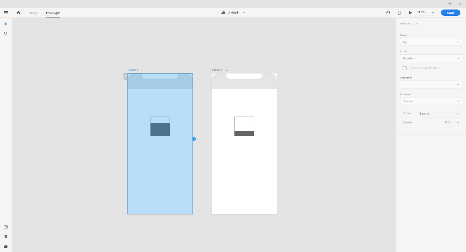 Step 8: When both artboards are connected as in image. You can click on "play" icon on top right corner.